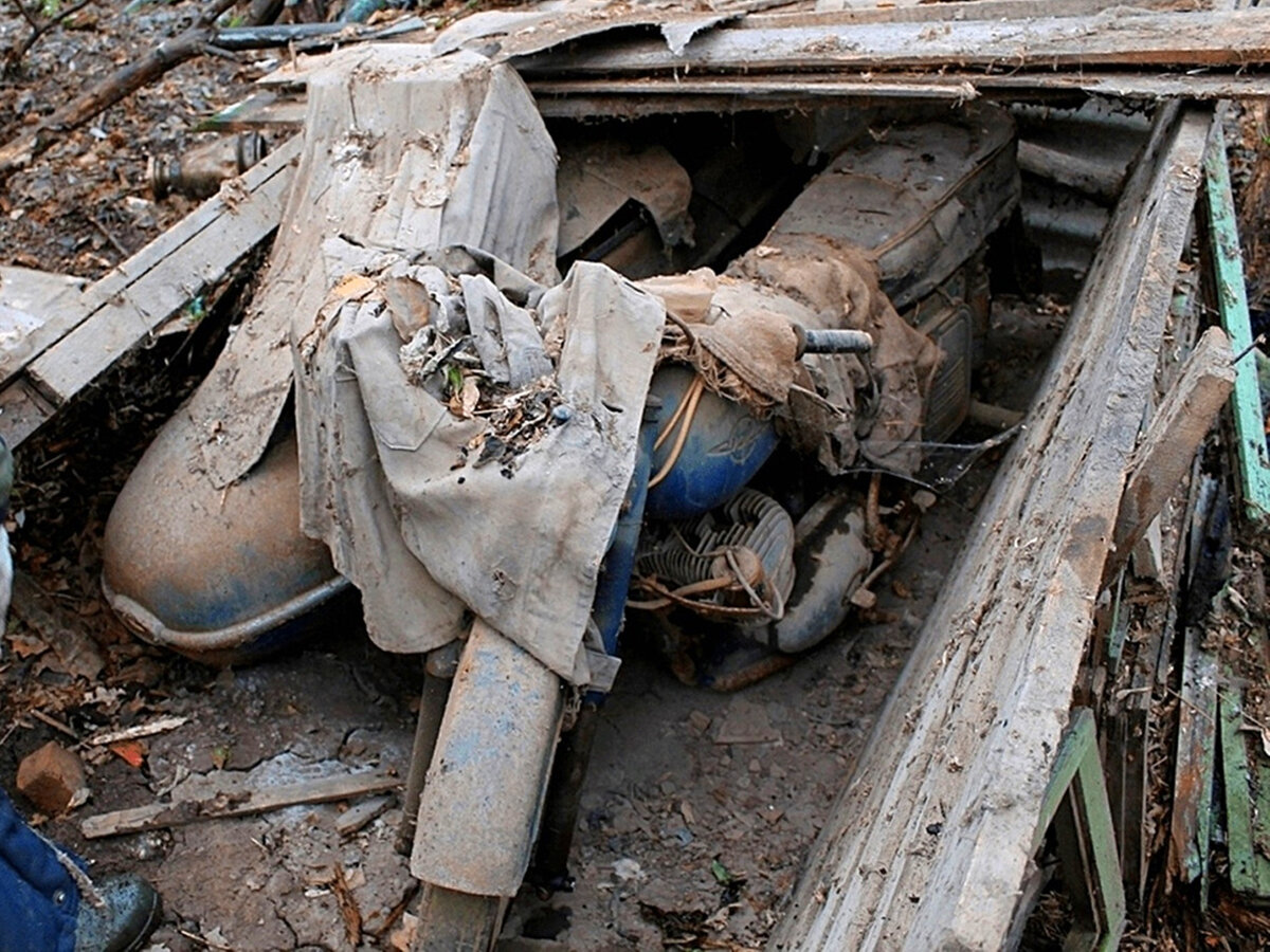 Посещая родственников в деревне, на хоздворах, около сенников с истлевшими остатками сена, в старых сараях просевшими дверными проёмами можно заметить торчащее из старых досок и мешков, зеркало заднего вида, часть руля или протектор колеса давно забытого мотоцикла.