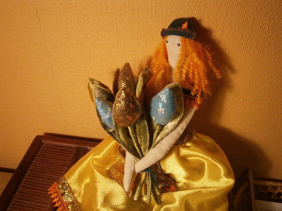 Солнца мне! Солнца! Вот о чём я думала, когда шила эту куклу. Зима, помню, была в тот год такая слякотная и промозглая, серая и длинная, что жутко хотелось уже света и тепла. Ну, хотя бы цвета!