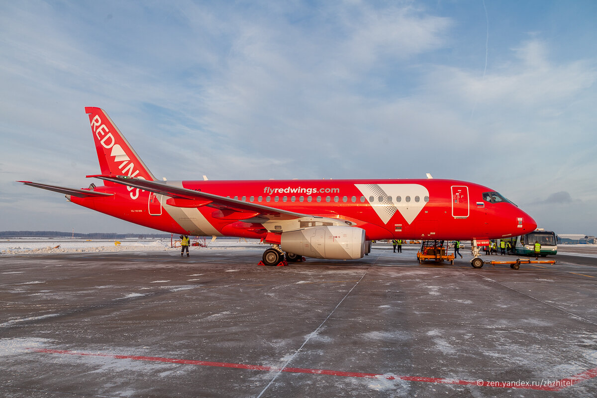Авиакомпания Red Wings представила новый борт в своем парке. Им стал ярко-красный «Суперджет» SSJ100. Я съездил в аэропорт Домодедово, чтобы подготовить репортаж об этом самолете. На мой взгляд, это самый красивый из всех выпущенных «Суперджетов».
