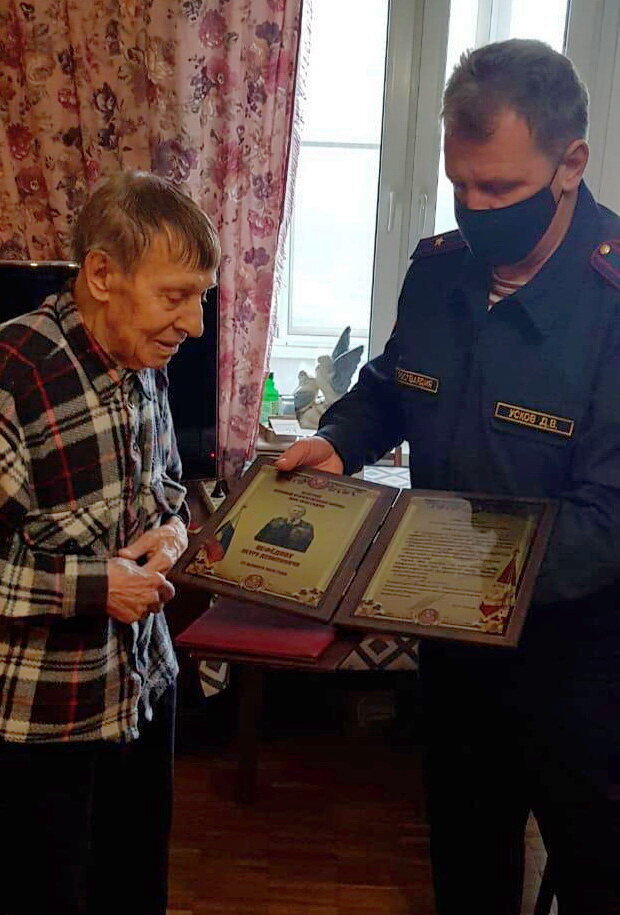 Ветерана Великой Отечественной войны и органов внутренних дел Петра Нефёдова пришли поздравить с днем рождения сотрудники 4-го полка вневедомственной охраны Главного управления Росгвардии по г. Москве.