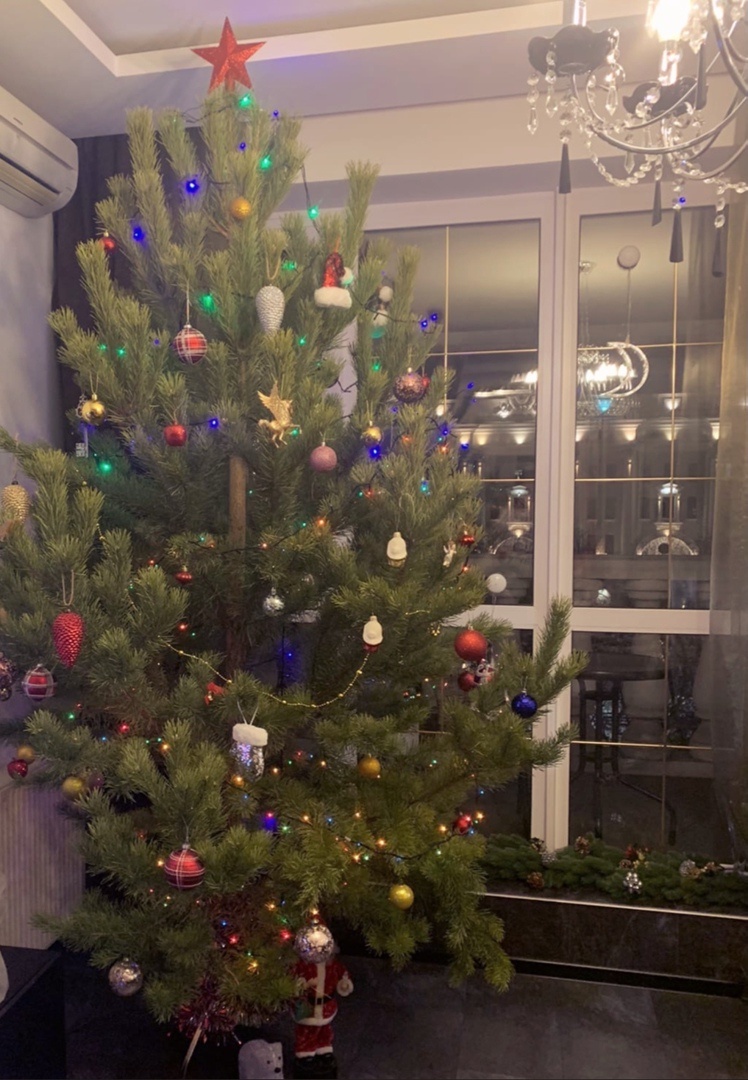 Мы купили уже одну искусственную елку,и хотели поставить на этом точку ,но так вышло,что сын безумно захотел живую большую елку,боже,все дни только о елке и говорил,я уже не могла даже это слушать,елка елка елка.