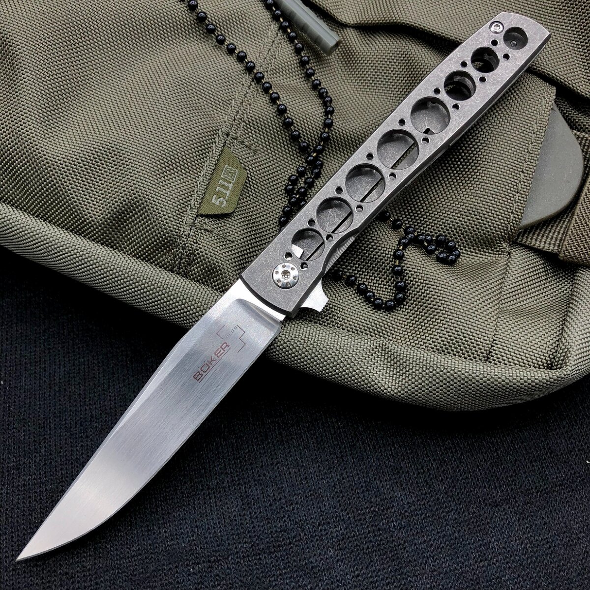 Для себя я выбрал самый легкий вариант Urban Trapper'а - в титановом исполнении он весит всего 48 граммов. Клин из моей любимой сталюки VG10 выше всяких похвал, рез из коробки отличный.