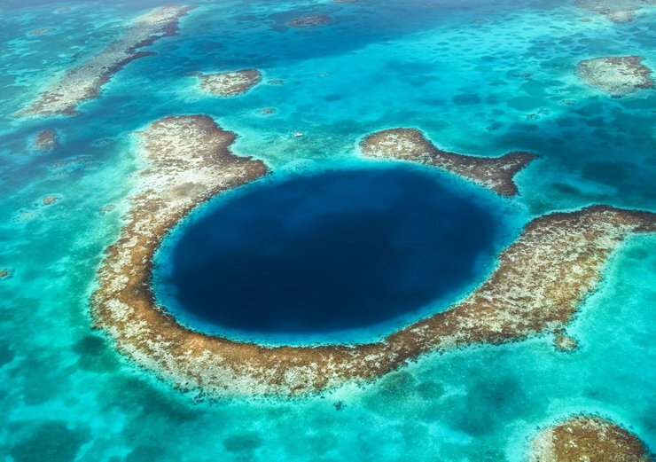 В стране Белиз (Центральная Америка) посередине кораллового рифа Лайтхаус находится Большая голубая (синяя) дыра. Впервые о наличии этой впадины в Атлантическом океане поведал миру французский исследователь океана Жак Ив Кусто. Учёные произвели исследование этого загадочного места. Глубина впадины – 120 метров, диаметр более – 300 метров.