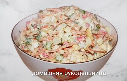 - Салат готов. Приятного аппетита. Всех с наступающим новым годом! Ставь лайк, подписывайтесь на мой канал домашняя рукодельница. https://zen.yandex.ru/id/5fce0d86c9e0347434563d1d, что читаете мои статьи.