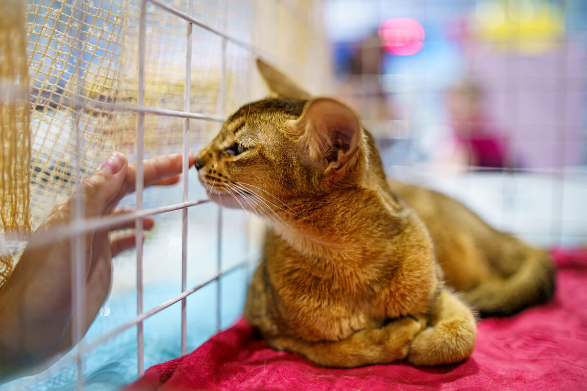 Кошкам в первые сутки после переезда обязательно нужно укрытие. Главное, чтобы это не был прозрачный контейнер-витрина, как в зоомагазине: в них животные круглосуточно видят друг друга, не могут спрятаться и стрессуют ещё больше. Подойдёт закрытый домик, переноска или клетка с наброшенным сверху покрывалом. Внутрь должны помещаться миски для корма и воды, лежанка и лоток. Когда кошка привыкнет к новой обстановке, её нужно выпускать погулять. Сидеть в клетке круглосуточно не стоит даже старым животным.