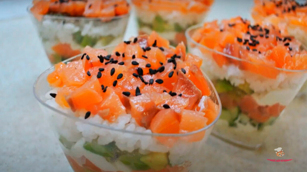 Удивите своих гостей и удивитесь сами великолепной подачей салата. Салат-суши в стакане - и вкусно, и оригинально и довольно просто готовится! И кушать удобно, не правда ли?