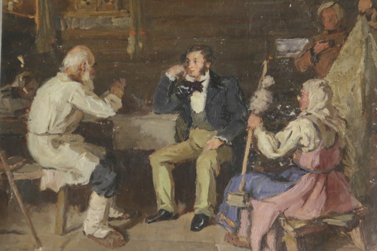 Алевтина Анатольевича уже давно нет, но полотна его живут самостоятельной жизнью. Радуют, удивляют, поражают, заставляют задуматься — словом, всеми силами обращают на себя внимание. А по-другому и быть не могло. Алевтин Ведерников писал профессионально, с глубоким смыслом. Здесь он показывал и настоящий быт, и додуманные истории. Вот, к примеру, работа, где изображен Александр Сергеевич Пушкин. На холсте целый сюжет. Кстати, художник умел искусно изображать именно сюжеты, то есть на его картинах персонажи не просто жили, а взаимодействовали друг с другом. Так, поясняют профессионалы, может далеко не каждый художник. А он мог. Интересный момент: на выставке можно увидеть несколько автопортретов Алевтина Анатольевича. С этих полотен он как бы обращается к людям. И везде наблюдается некая встревоженность. Складывается ощущение, что художник хотел сказать что-то важное, сокровенное, но его не слышали. Может быть, не хотели слышать. Вероятно, именно поэтому он, бросив все в своем городе, решил переехать в 1983 году в Абакан. Начав с нуля. С собой живописец привез коллекцию своих картин.