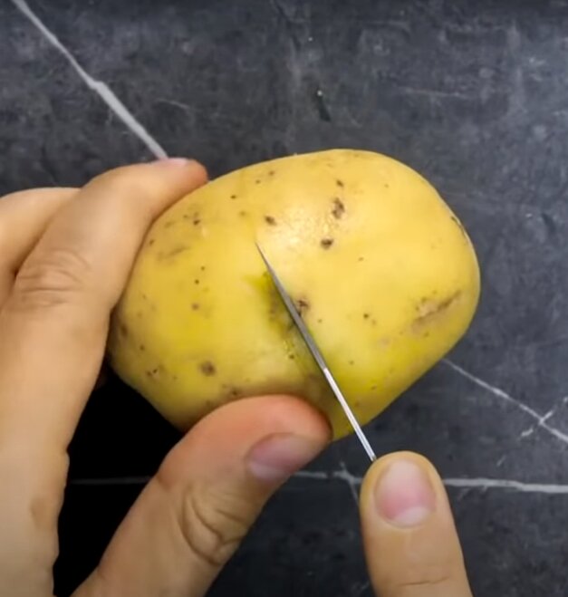 Первый секрет - надрезать картошку посередине по всему периметру перед тем, как варить.