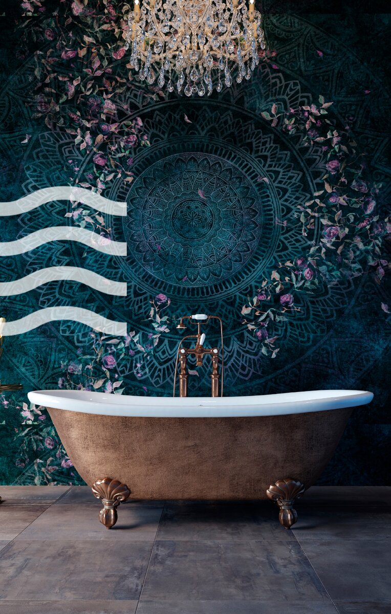 Добавляют уюта утилитарному белому глянцу и сверкающему хрому. В мокрой зоне – вокруг ванны, душевой, раковины – их использовать не стоит, а на остальных поверхностях вполне! Даже дорогие обои точно будут дешевле плитки и услуг укладчика, а покупка одного шикарного рулона со стильным принтом не ударит по карману, а ванную преобразить поможет.
