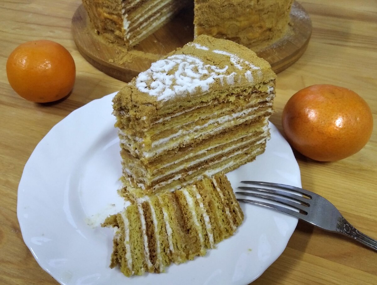 Очень вкусный, нежный, медово-мандариновый торт. Очень рекомендую. И пусть будет праздник!