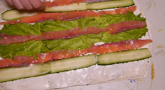 Предлагаю Вашему вниманию рецепт приготовления вкусной закуски к любому праздничному столу. Рулет из лаваша с красной рыбой и сыром филадельфия обладает нежным вкусом, а благодаря огурцу и листьям салата приобретает сочность и свежесть. Рулет из лаваша с красной рыбой красивая и яркая закуска или перекус.