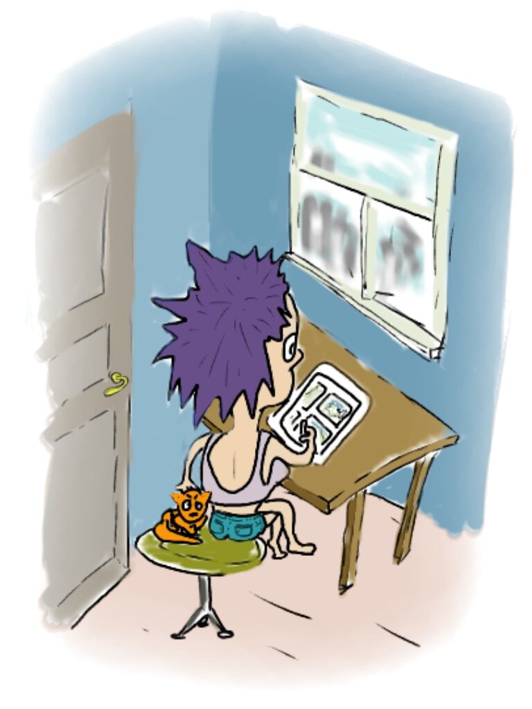 Одна девушка думала что она не красивая, и по этому она практически ни когда не проводила много времени у зеркала. Большую часть времени она проводила за планшетом и рисовала комиксы в которых она сама бы хотела выглядеть как её главная героиня. Она в социальной сети создала аккаунт где так же и подписалась и поставила аватар своей героини.