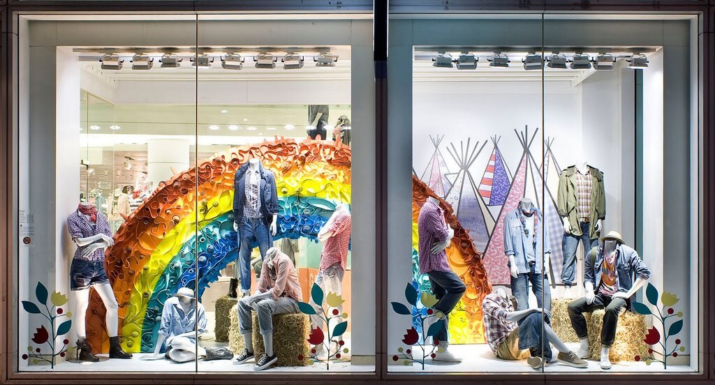 Яркий холодный свет, особая подсветска витрин позволяет выделить товар и желать его купить немедленно. Кстати, вы не задумывались, почему большинство торговых сетей в качестве фирменных цветов выбирают красный или синий? Эти цвета бессознательно сообщают нам, что в этом месте будет интересно (красный), но при этом спокойно и безопасно (синий). А дополнительный желтый или оранжевый оттенок, которые тоже часто встречается в оформлении супермаркетов обещает нам радость и приятные эмоции.