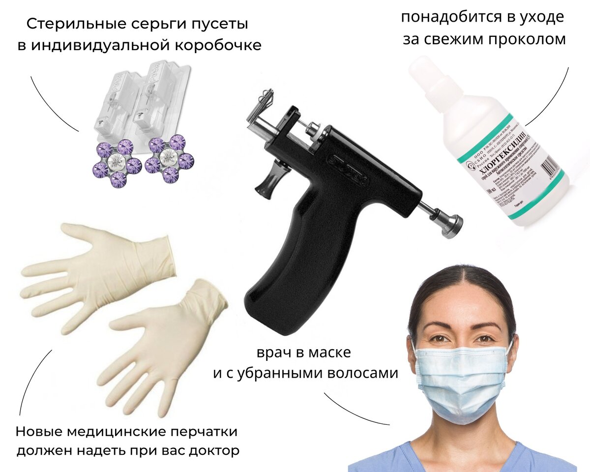 1. Ищем клиники где прокалывают уши. Важно, чтобы мастером был человек с мед образованием. Вот сюда вбиваете " проколоть уши" https://www.google.ru/maps , выбираете клинику. 2. Узнаем работают ли они с пистолетами "Система 75". "Система 75" - самый безопасный способ проколоть детские ушки. Пусеты находятся в стерильной упаковке, которая вскрывается только при проколе. Пусеты для этих пистолетов тонкие, это минимизирует болевые ощущения. Их можно купить в клинике, но если вы хотите выбрать из обширного ассортимента, посмотрите здесь.