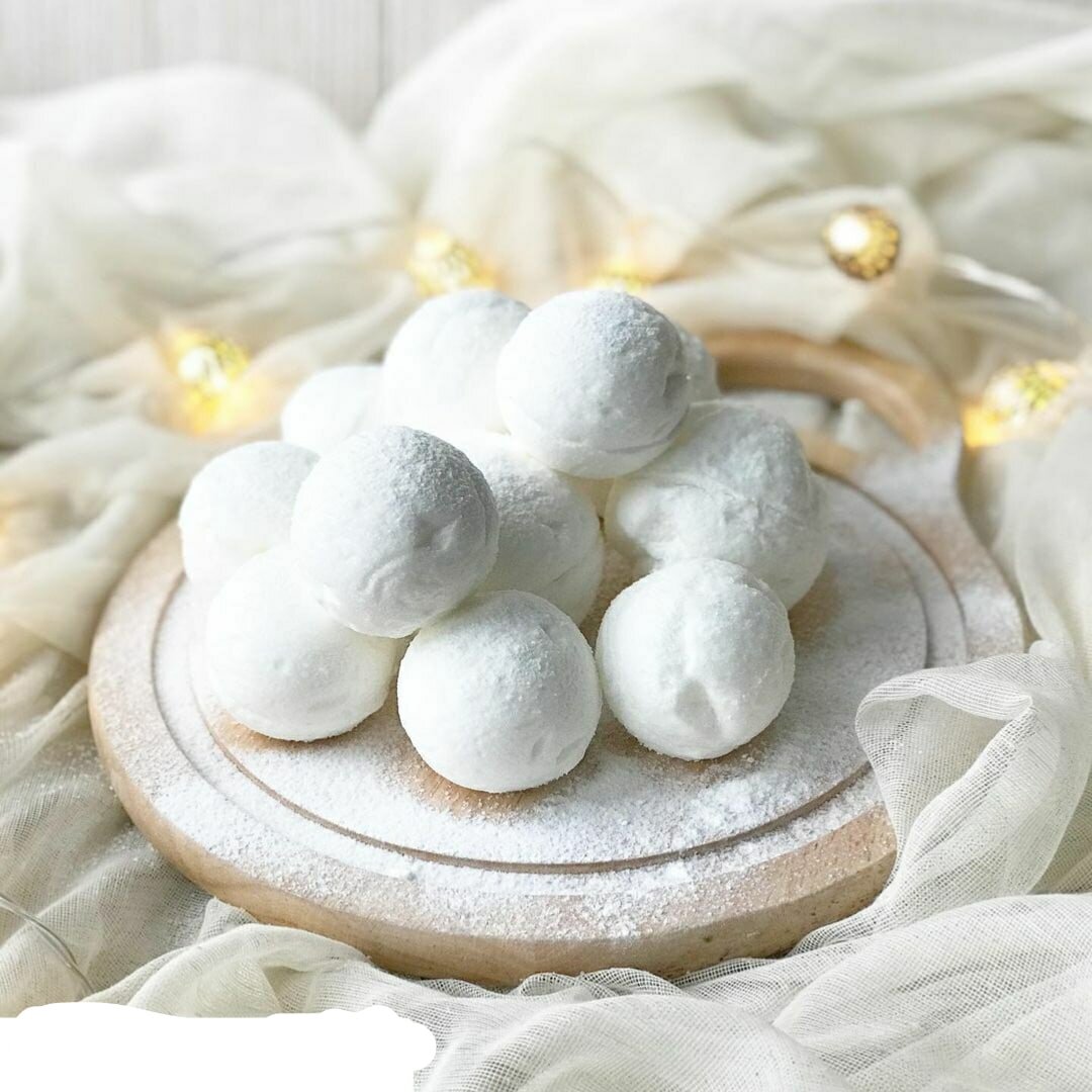 * Достаем половинки снежков, соединяем попарно, обваливаем в нетающей сахарной пудре