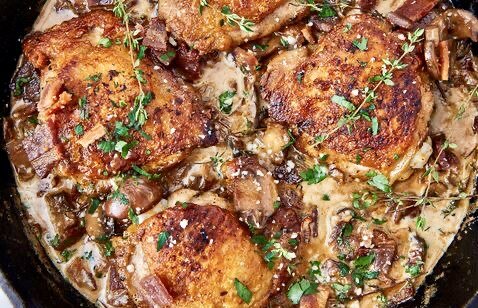 Волшебная часть этого рецепта заключается в том, что куриные бедра готовятся на жире от бекона, а это означает, что хрустящая кожица имеет вкус бекона. Если у вас нет бекона (и вы не хотите его покупать), используйте оливковое масло.