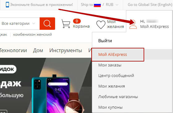 - Переходим на сайт AliExpress и авторизуемся под своей учетной записью