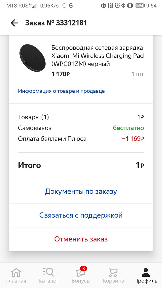 Во вчерашней статье, я рассказывал как получил от Яндекса 1500 рублей за открытие и пополнение брокерского счёта в виде баллов на Яндекс.Плюс. Для того чтобы их потратить необходимо оформить подписку на этот самый Яндекс.Плюс, первый месяц бесплатно потом 199 рублей в месяц. После оформления подписки я заказал на Яндекс.Маркете беспроводную зарядку и оплатил 99% покупки этими баллами, списали