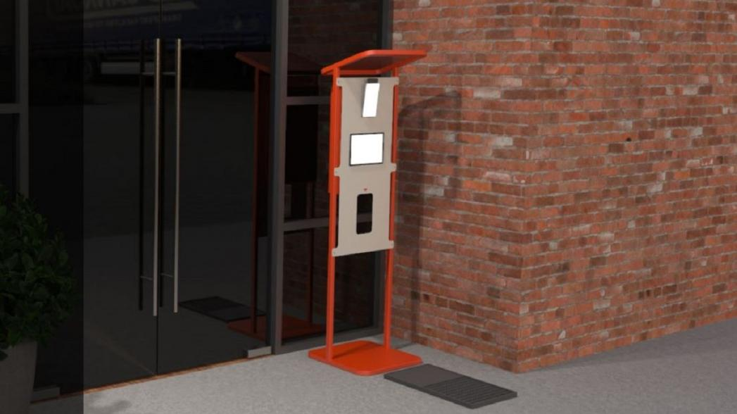 Пользователи могут отсканировать QR-код для получения инструкций и информации через свой смартфон. Термографическая камера определяет температуру тела и обеспечивает проверку наличия маски. Когда функция проверки состояния здоровья обнаруживает температуру на уровне 37,5°С или выше, она предупреждает пользователя личным сообщением. В дополнение к бесконтактному дезинфицирующему диспенсеру устройство включает в себя коврик для дезинфекции обуви, который очищает подошвы обуви перед входом в помещение.