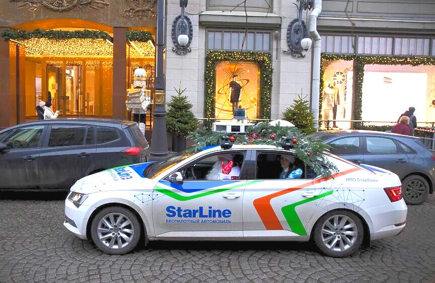 Петербургские разработчики беспилотного автомобиля StarLine провели праздничную предновогоднюю акцию и поздравили жителей города.
