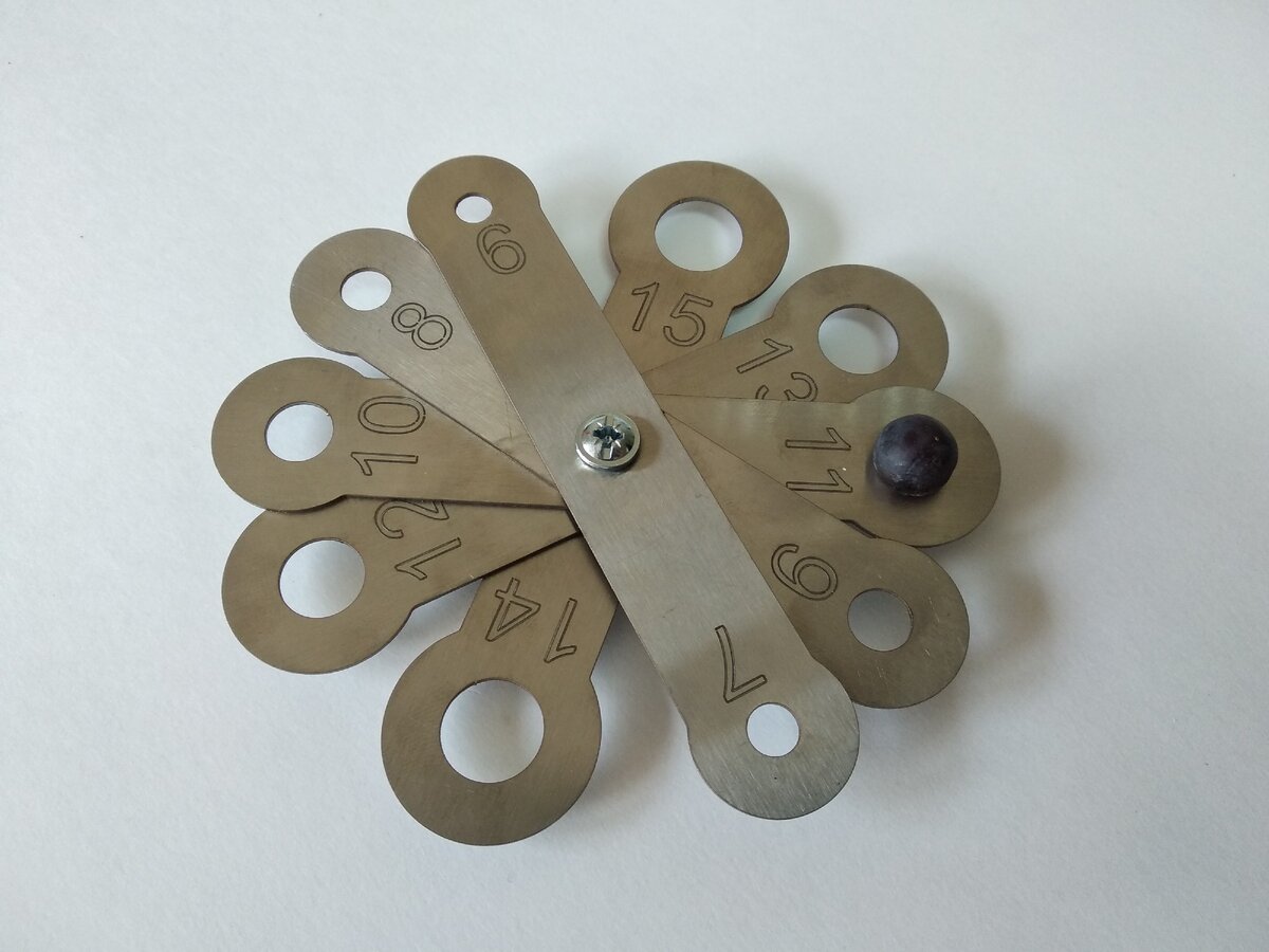 Ручной веерный калибратор 6-15 предназначен для точной калибровки ягод, винограда, вишни, черешни, а так же помидор черри. Десять калибровочных отверстий от самого малого диаметром 6 мм до самого большого диаметром 15 мм с шагом всего 1 мм, что обеспечивает максимально точную сортировку по диаметру. Данная модель изготовлена из нержавеющей стали толщиной 1 мм - самый лучший выбор, если хотите,