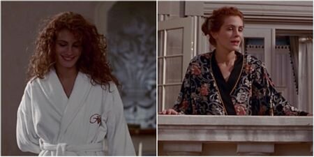Хотя многие могут не считать халаты одеждой, сложно взглянуть на Вивиан в одном и не пересмотреть. Вивиан впервые видят в халате наутро после ее первой ночи с Эдвардом. Естественный вид без тяжелой подводки для глаз, помады и короткого светловолосого парика, сделанных накануне вечером.