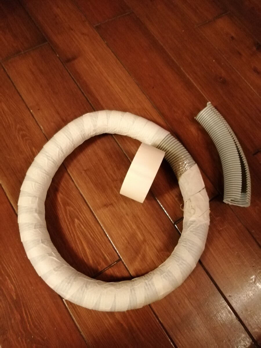 Взял пол метра гофротрубы диаметром 63 мм. Сделал из неё круг и обмотал бумажной малярной лентой.