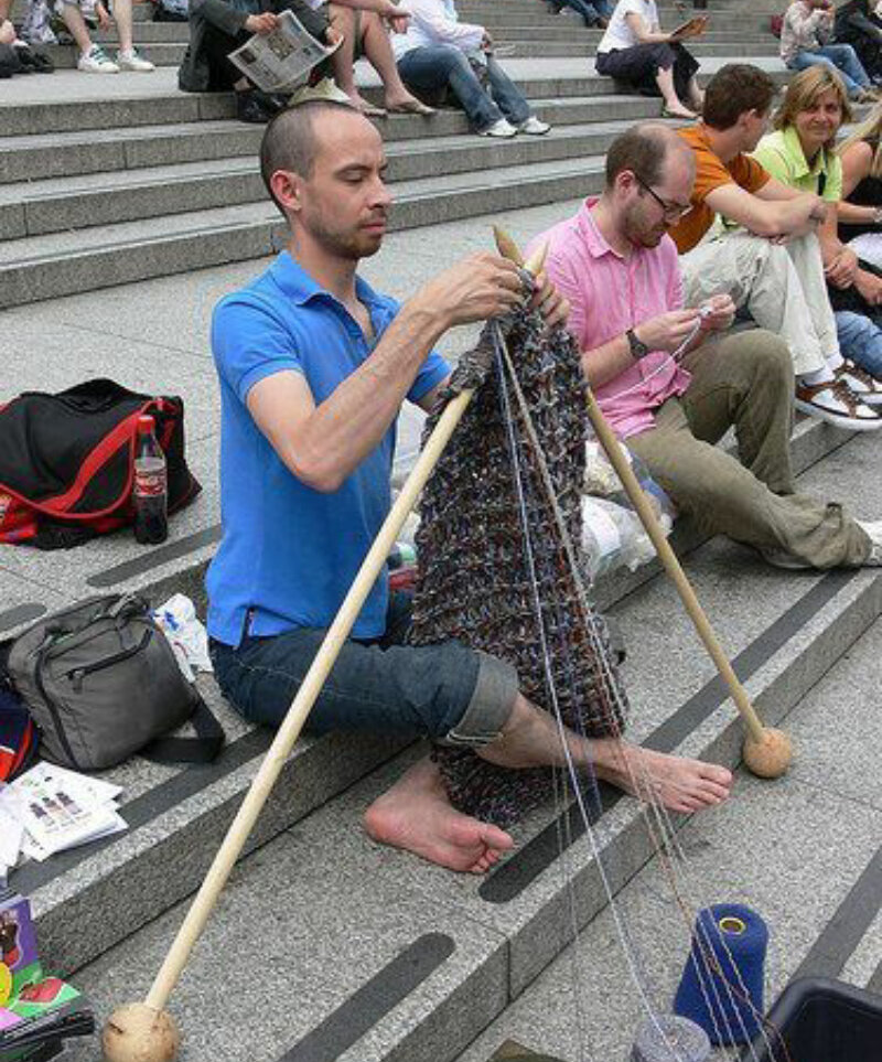 Вязанию подчинились и мужчины, и женщины. Здесь многое зависит от размера спиц.И до сих пор не понятно, кто больше преуспел в вязании.