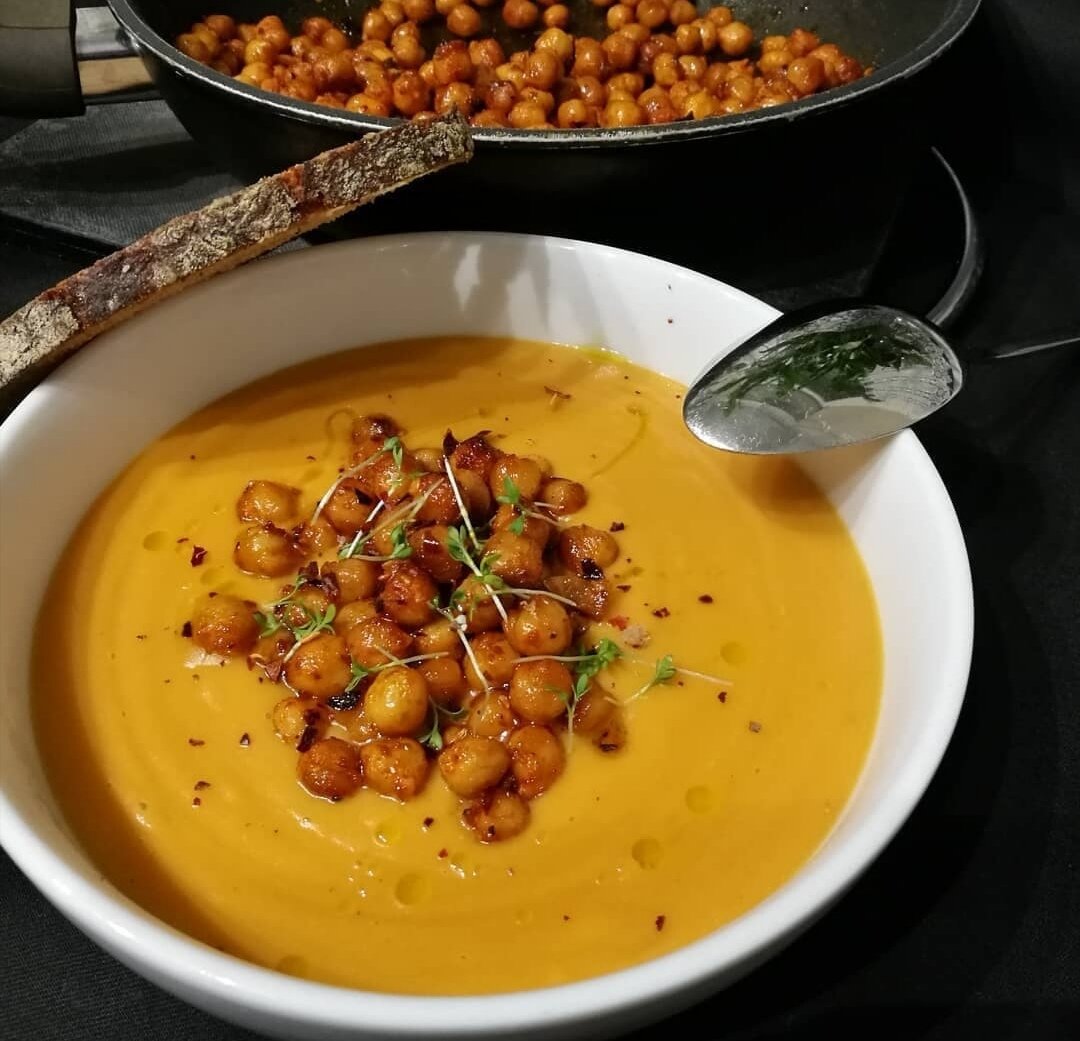 Предлагаю обратить внимание на теплый тыквенный суп, который поможет прогнать