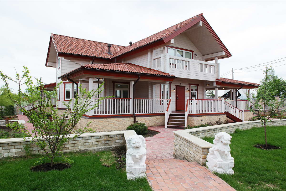 Какой именно вид древесины выбрать – подсказал случай. Недалеко от деревни в коттеджном посёлке компания «НЛК-ДОМОСТРОЕНИЕ» возводила коттеджи из клеёного бруса. Данный материал обладает массой функциональных и эстетических достоинств. Цветовое решение было выбрано очень обдуманно – это пример бережного отношения к окружению. Поскольку главным объектом среди близлежащих строений являлась церковь из красного кирпича с деталями белого цвета, то, чтобы не контрастировать с нею, а быть единым деревенским ансамблем, основными цветами дома стали белый и красный. Здание получилось достаточно большим по площади. Цокольный этаж занимают мастерская и технические помещения. На первом находится репрезентативная зона, на втором – приватная. Проектирование интерьера совершенно не походило на то, что обычно понимают под этим словосочетанием. По словам Ильи Насонова, с его стороны это был, скорее, консалтинг, ибо основные идеи исходили от хозяйки дома.