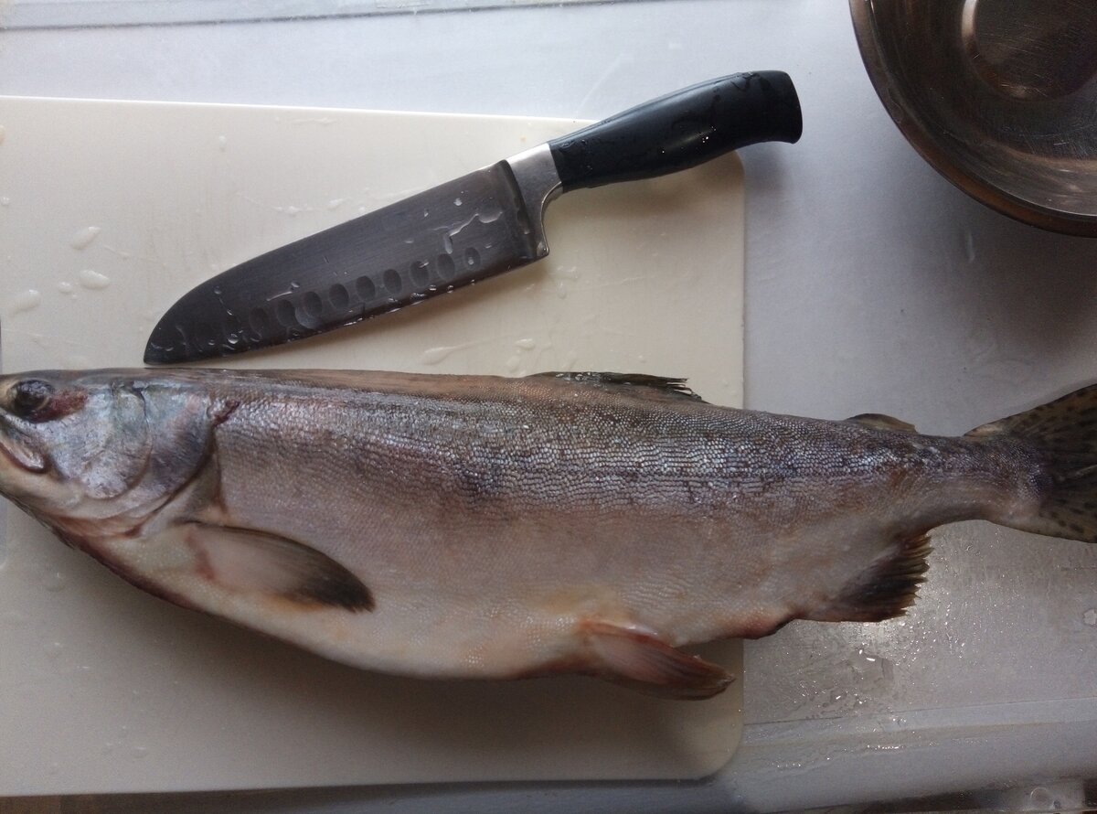 Вот такую рыбку я купила, на 1,5 кг. Она заморожена, размораживать не надо. Просто кладем её под теплую