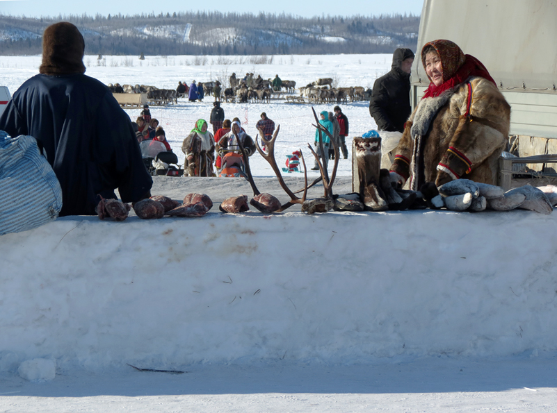 На просторе носились снегоходы и оленьи упряжки: