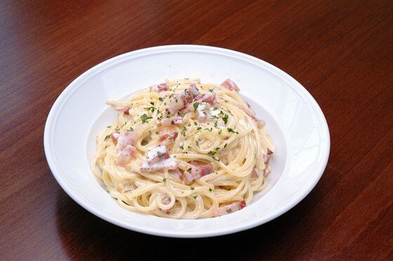 Что бы приготовить пасту, я вам сначала расскажу, что это такое. Паста — блюдо итальянской кухни, состоящее из двух основных компонентов: любого макаронного изделия и соуса. Хотя рецепт приготовления пасты к нам пришёл из Италии, блюдо это настолько популярно, что сегодня как приготовить пасту знают многие кулинары. Ингредиенты: Спагетти-400 г Оливковое масло 6 столовых ложек Чеснок-2 зубчика Ветчина-300 г Яичный желток-4 штуки Тертый сыр пармезан-100 г Сливки 10% 200 мл Соль-по вкусу Молотый черный перец-по вкусу Приготовление: Для начала приготовим сливочный соус. На мелкой терке натрём 100 г сыра пармезан. Переложим его в миску. Добавим к сыру 200 мл сливок, соль, перец и 3 яичных желтка. Все вместе перемешаем и отложим в сторону. Спагетти отварим в большом количестве подсоленной воды до состояния аль денте. Тем временем нарежем бекон тонкой соломкой. Два зубчика чеснока выдавим через пресс или также мелко нарежем. В сковороде на среднем огне обжариваем бекон(без масла), букваль