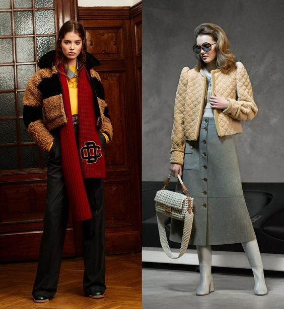 Чаще всего это модели из эко-меха. В тренде, как укороченные модели, так и классическая длинна миди.