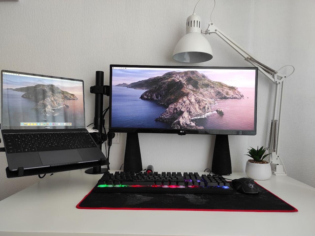 Давно заглядывался на разные кронштейны для монитора\ноутбука. Приобрел себе и очень доволен. Расскажу о плюсах, для кого и стоит ли покупать. По обычаю начну с плюсов: Для кого будет удобно? Я думаю для всех, но в особенности для геймеров, либо для программистов, потому что писать код становится более удобно и приятнее. Спасибо вам за внимание! Так же прочитать обзор на ноутбук, что есть на этих фото - Huawei MateBook 13 вы можете тут.
