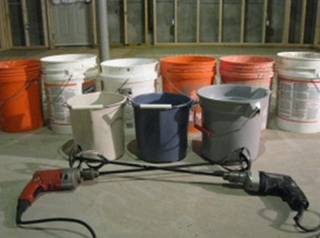 1. Как минимум четыре 9-литровых ведра. С большим количеством ведер работа будет проще, и, поскольку у нас было 9 ведер, мы использовали их все при заливке.
