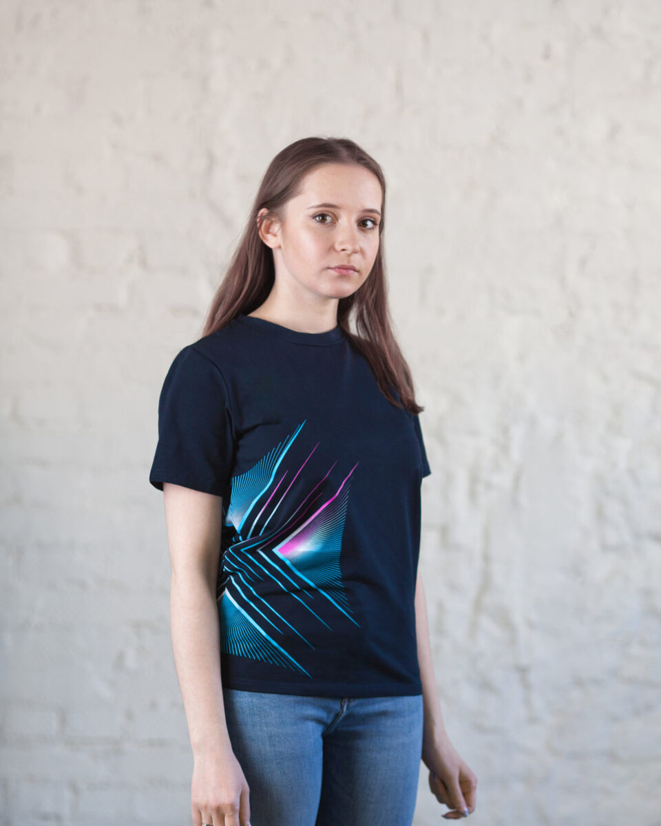 3 примера правильного использования. Разбираем на собственных кейсах. 1.Для поддержания концепции. Перенос рисунка с экранов, фотозоны и прочего круто работает. Одежда стала одним из выразительных средств, как свет, музыка и видео, она погружает в концепцию ивента. Более того, когда не просто персонал, а сотрудники и спикеры в брендированной форме, складывается четкое ощущение, что перед тобой большая команда, работающая на воплощение единой цели. И речь идет не о футболках с визуалом, а о хороших рубашках и свитшотах для спикеров и сотрудников и поло для промо-персонала – это позволяет визуально определять статус. 2. HR-стратегия Воплощать HR-задачи – наше любимое занятие. Вот пример. Как повысить лояльность сотрудников, чтобы они с гордостью носили имя своей компании на одежде даже в повседневной жизни? Сделать прикольную футболку! Наши дизайнеры придумали персонажа, отражающего специфику деятельности компании в современном стиле и использовали сленг айтишников. Про юмор тоже не з