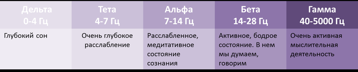 Частоты мозга Все Ваши действия и слова регулируются частотой мозговых волн. Существует пять различных уровней мозговых волн: бета, альфа, тета, дельта и гамма. Они постоянно меняются, поскольку в мозгу все время присутствуют мозговые волны всех частот. Однако в каждой конкретной ситуации доминирует только один частотный уровень. Тета-уровень Сознательно удерживая мозг на тета-уровне, Вы можете создавать что угодно и мгновенно менять реальность.