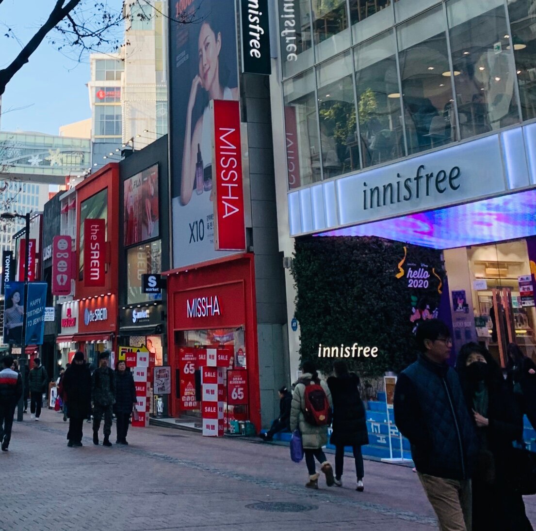В Южной Корее на каждом углу можно найти небольшие магазинчики с косметикой, иногда часть продукции находится перед входом в магазин, обычно это бестселлеры или товары со скидкой ( чтоб заинтересовать покупателя).