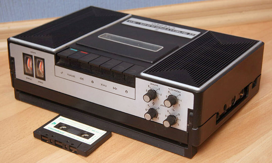 Однако магнитофон, о котором речь пойдёт в сегодняшней статье, в продаже там, где жил я-был. Может и не всегда, но более-менее регулярно в течении пары-тройки лет. Вот только даже на волне тотального дефицита он почему-то не стал популярным. Во всяком случае я не припомню ни одного из своих друзей и даже просто знакомых, у кого бы он был во владении. «Электроника-302», «Романтик-306», «Весна-212» ( и её клоны под марками «Русь» и «Карпаты», «Соната-212/213/216» и т.д. – этого добра хватало, а вот «Электроника-311» в этой компании как-то не отметилась. Почему? В те времена я как-то об этом не задумывался, а с позиций дня сегодняшнего как раз кажется что у магнитофона были все предпосылки стать популярным. Во-первых это всё таки стерео (хотя и 3-й класс), во-вторых помимо двух встроенных динамиков в комплекте поставки имелись и внешние АС (пусть и мало отличающиеся по звучанию от встроенных динамиков. Ну а в третьих-цена. 288 рублей за стереомагнитофон с колоночками не бог весть какая сумма и поэтому цену можно отнести скорее к плюсам, чем к минусам. Что же касается минусов, то это внешний блок питания, что несколько неудобно. К минусам можно отнести и слабую крышку кассетоприёмника: долго она не жила и потому после двух-трёх лет эксплуатации многие «Электроники» выглядели примерно так, как экземпляр на нижеприведённом фото.