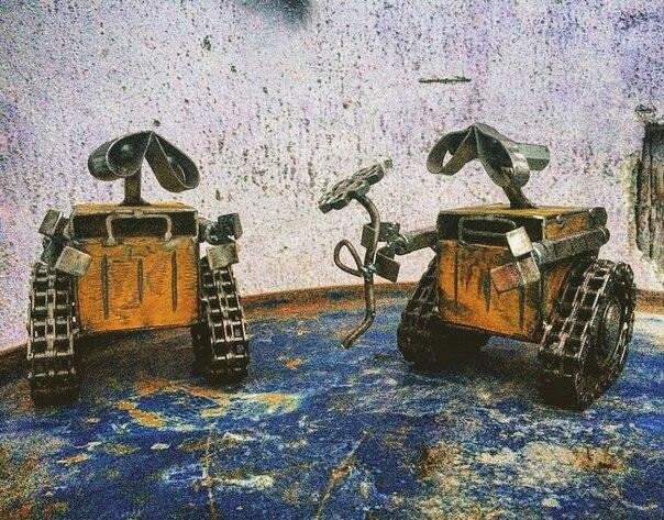 Добрый день уважаемые подписчики. Оцените пожалуйста этих прекрасных роботов Валли. Сделано из болтов гаек подшипников обрезков листового металла, сваренных между собой сваркой👍🔥🔋🔩🔧🔨⛏⚒🔗🔩