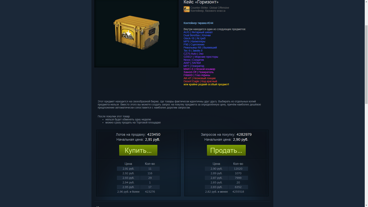 Вы все знаете, что Steam, это необычная площадка игр, целый инвестиционный рынок, на котором можно заработать и даже приумножить свои деньги. Я расскажу о нескольких кейсах, который скоро вырастут в цене и вы сможете легко заработать на этом. 4. "Горизонт" - кейс В скором времени, он точно вырастет, в цене, так как сейчас он стоит сущие копейки, всего 2,91 рубля. Вкладывайтесь если у вас немного денег. 3. "Хромированный 3" - кейс Этот кейс будет взлетать в цене, так как он вышел уже достаточно давно и стоит дешево, всего 2,87 рубля. Также там хорошие скины. 2. "Гамма 2" - кейс Гамма 2 уже успел, немного взлететь, но когда вы его купите, вы все равно хорошо окупитесь и приумножите свой баланс, стоит всего 8,70 рублей. 1. "Хромированный 2" - кейс Этот кейс точно будет стоять больше 25 рублей, так как первый хромированный стоит именно столько, и он один из старых кейсов. Так что я рекомендую вкладываться именно в него. Сейчас он стоит всего 6,97 рублей.