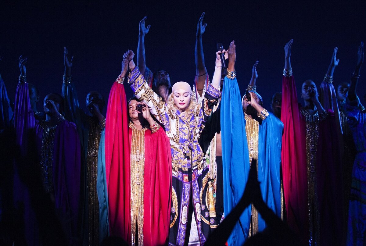 Образ и вправду получился колоритным и ярким. Однако, на мой взгляд, не совсем идущим женщине, прямо скажем, совсем не молодой. Свадебное платье с фривольными подвязками, демонстрируемое на достославном выступлении с песней "Like a Virgin" в середине 80-х, спустя 30 лет плохо сидит на Мадонне. Игра в девочку удалась на слабенькую "троечку".