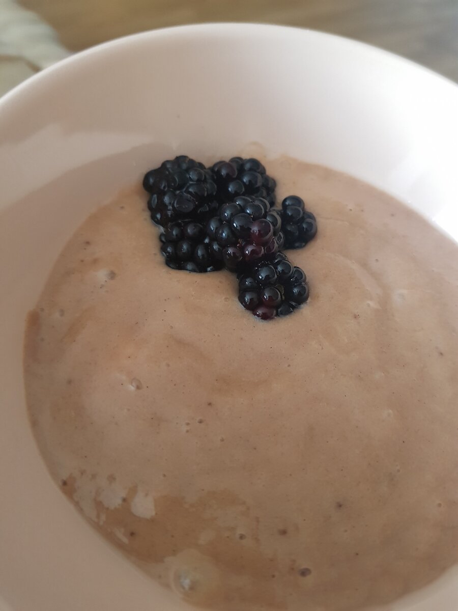 Ингредиенты: Замороженный банан 2 шт Какао 1 ч.л Способ приготовления Достать банан из морозилки, заранее порезанный на кусочки. Положить бананы и какао в блендер и готовить до загустения