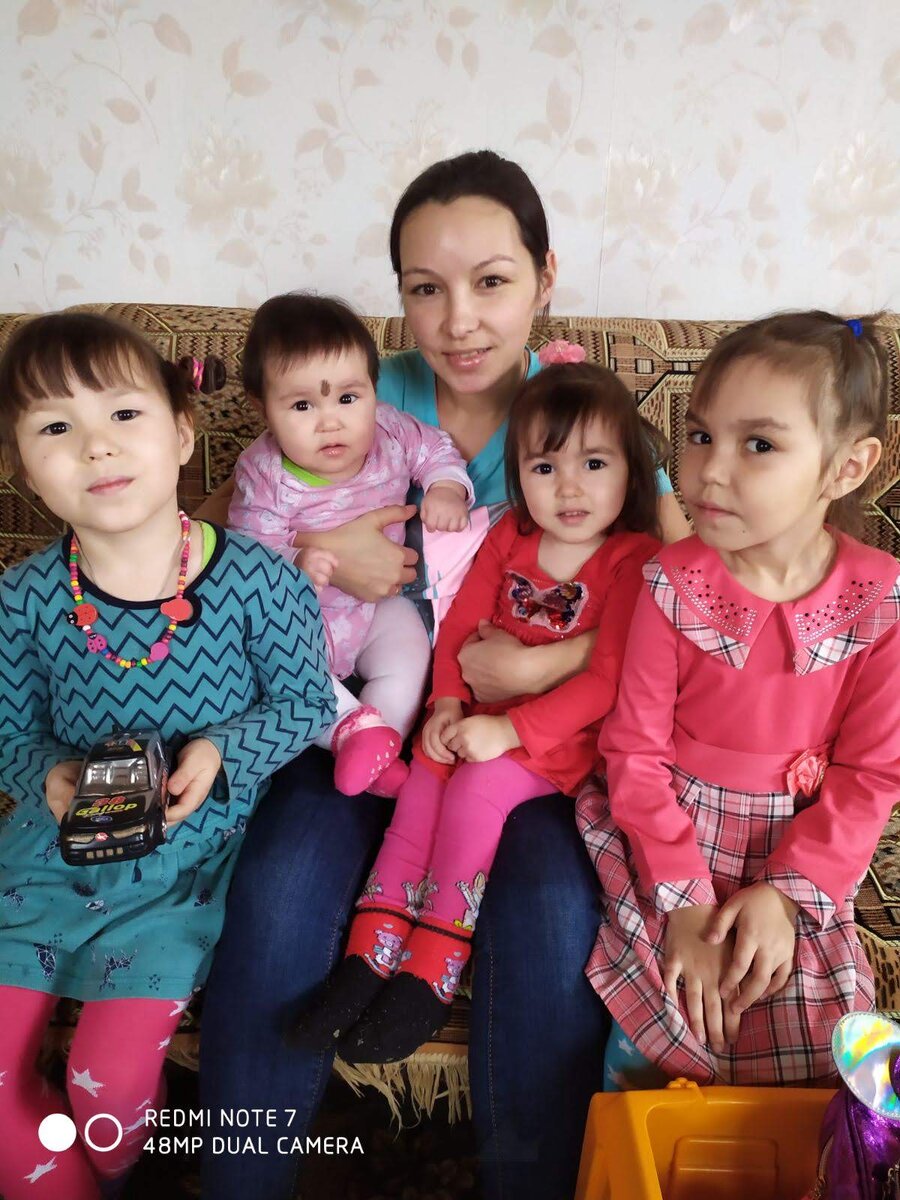 Я многодетная мама. У меня четыре маленькие принцессы. Старшей в октябре этого года будет 8 лет, а самой маленькой царевне 1 годик исполнилось месяц назад. С самого детства мечтала создать большую дружную семью, где все друг друга любят и ценят. Хотела родить от любимого человека двух сынишек и двух дочек. С количеством совпало, а с качеством не особо. Но я ни капли не жалею, что у меня девочки. Безумно рада этому. Да и муж гордится, говорит ювелирная работа. Как говорится: дети - это цветы жизни. Только с рождением детей ощутила истинный смысл жизни. В детстве будучи ребёнком самыми близкими людьми для меня были мои родители, повзрослев и влюбившись- главным человеком стал мой парень ( ныне муж), с появлением малыша мои ценности в жизни поменялись. Мои дети - это все то, чем я живу, ради чего я живу. Мое счастье заключается, в счастье моих детей. Каждый день я прошу у Бога здоровья и счастья своим девочкам и благодарю Его за такое богатство. Я очень благодарна своим родителям, любл
