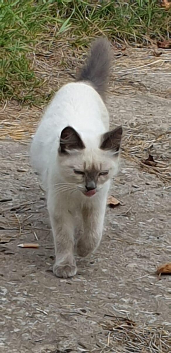 Несколько дней назад нам позвонили с соседнего города Русиново и сообщили, что уже несколько недель на улице пытается выжить котенок таец, ему примерно четыре месяца. Пока мы думали, куда его забирать и на какие деньги спасать, ведь у нас сейчас на попечении более 20 котят, ситуация обострилась. Вчера вечером нам сообщили, что собаки загнали котенка и он чудом успел забраться на дерево. На котором до сих пор и сидит.