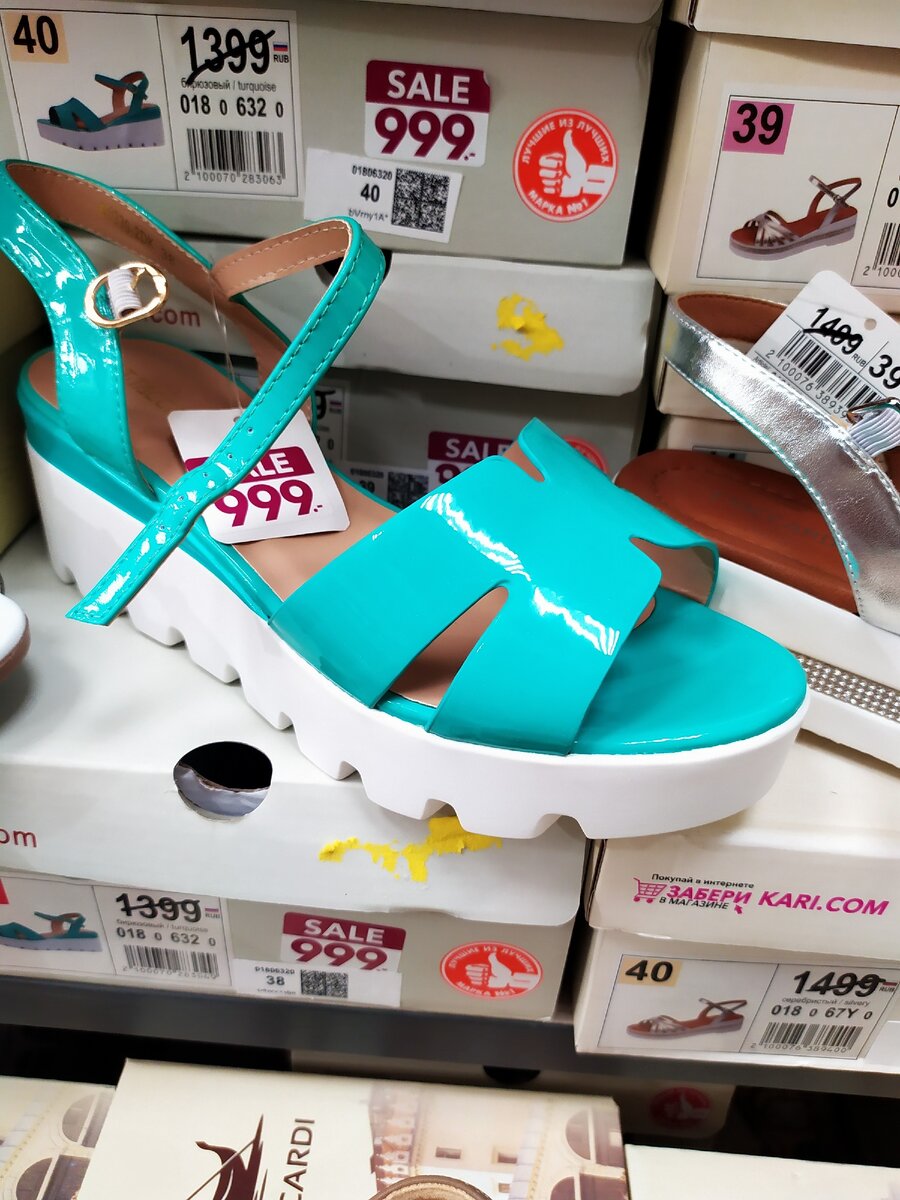 Обратила внимание в KARI, что если остаётся последняя пара обуви и не важно, какая, босоножки, сандалии или туфли, то цена у них совсем низкая и доходит до 199 рублей. С наступлением осени и модельный ряд резко меняется, но вот на летние модели обуви акции продолжаются и их с каждым моим посещением, в магазине становится меньше и меньше. В этом обзоре предлагаю посмотреть, что ещё осталось на