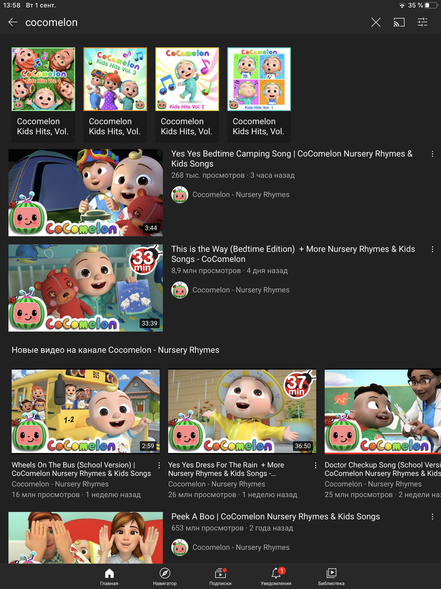 На YouTube можно написать Cocomelon или ABC Kids TV. Это простейшие песенки с английскими субтитрами.