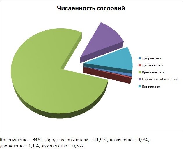 Свыше 90 % податного населения страны составляли крестьяне. Крестьяне были прикреплены к земле, платили ренту, несли рекрутскую повинность, платили подушную подать и т. д.