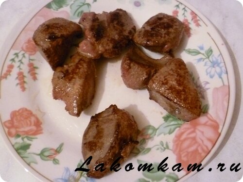Блюдо из мяса «Печень по-волжски». Приготовление. Печень нарезаем и обжариваем буквально по минутке с каждой стороны.